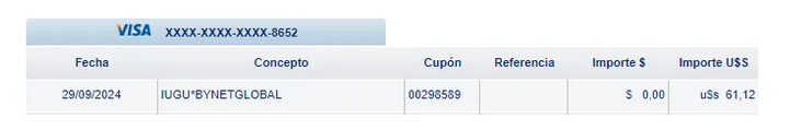 En ese mismo momento accedí a mi cuenta bancaria y fui a consumos de la tarjeta VISA con la cual realicé la compra y en el resumen vi que esa transacción se había procesado en moneda extranjera.